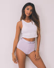 - Medium-rise waist, full-coverage seat.
