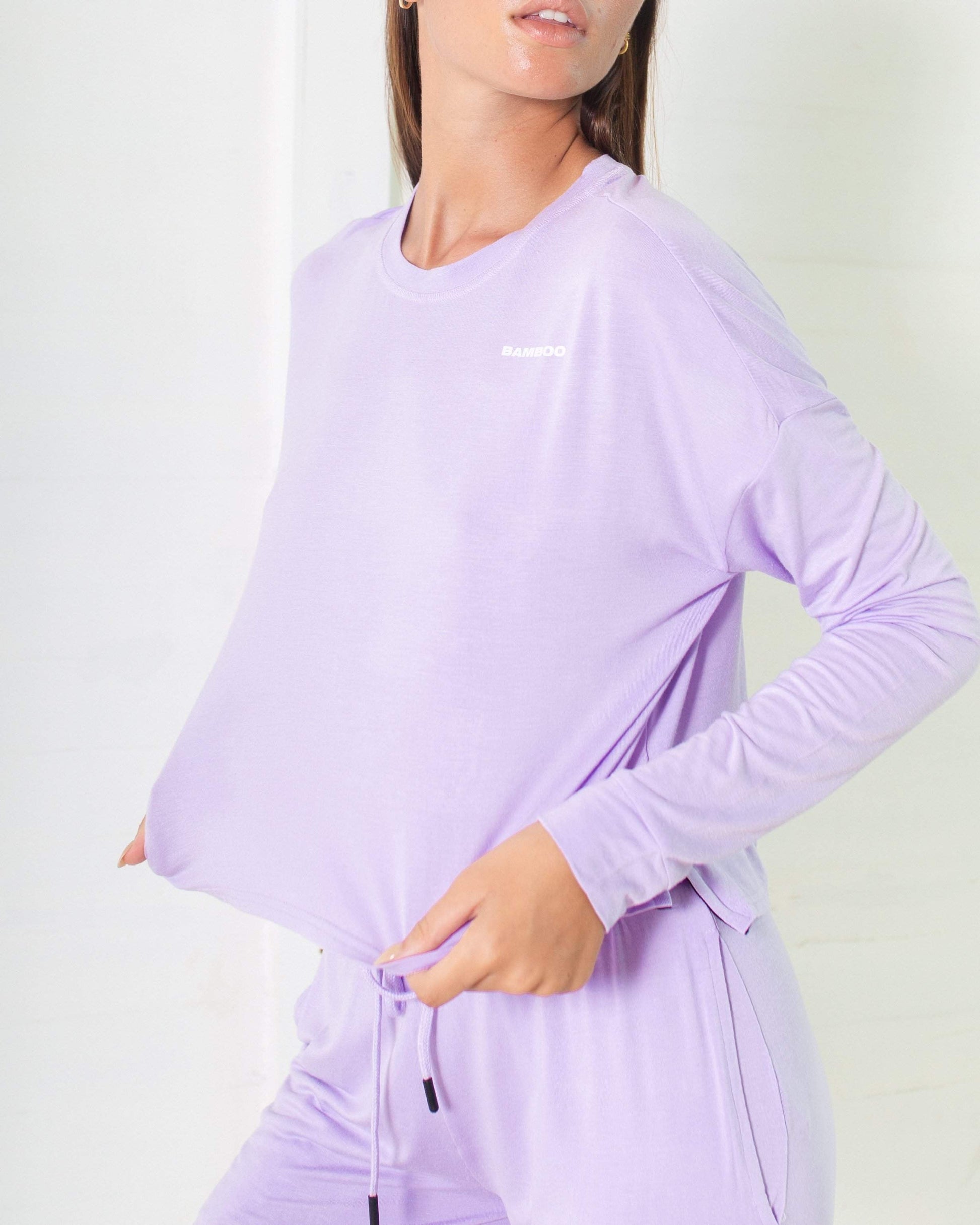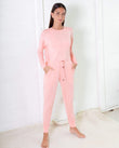Cozy, simple and feminine. This pyjama set is the perfect way to start your night with a matching lounge top and bottom made from 95% viscose from bamboo and 5% spandex for complete comfort.